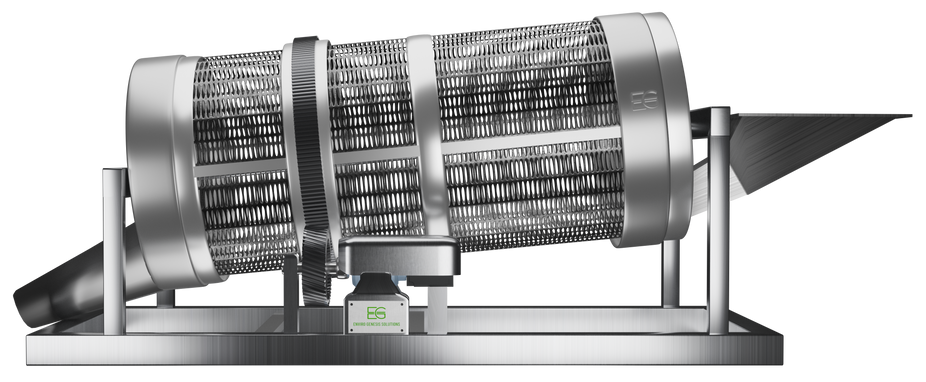 Size-Based Sorting: Material enters a rotating drum where smaller elements pass through pre-set apertures, while larger items are moved toward the exit.